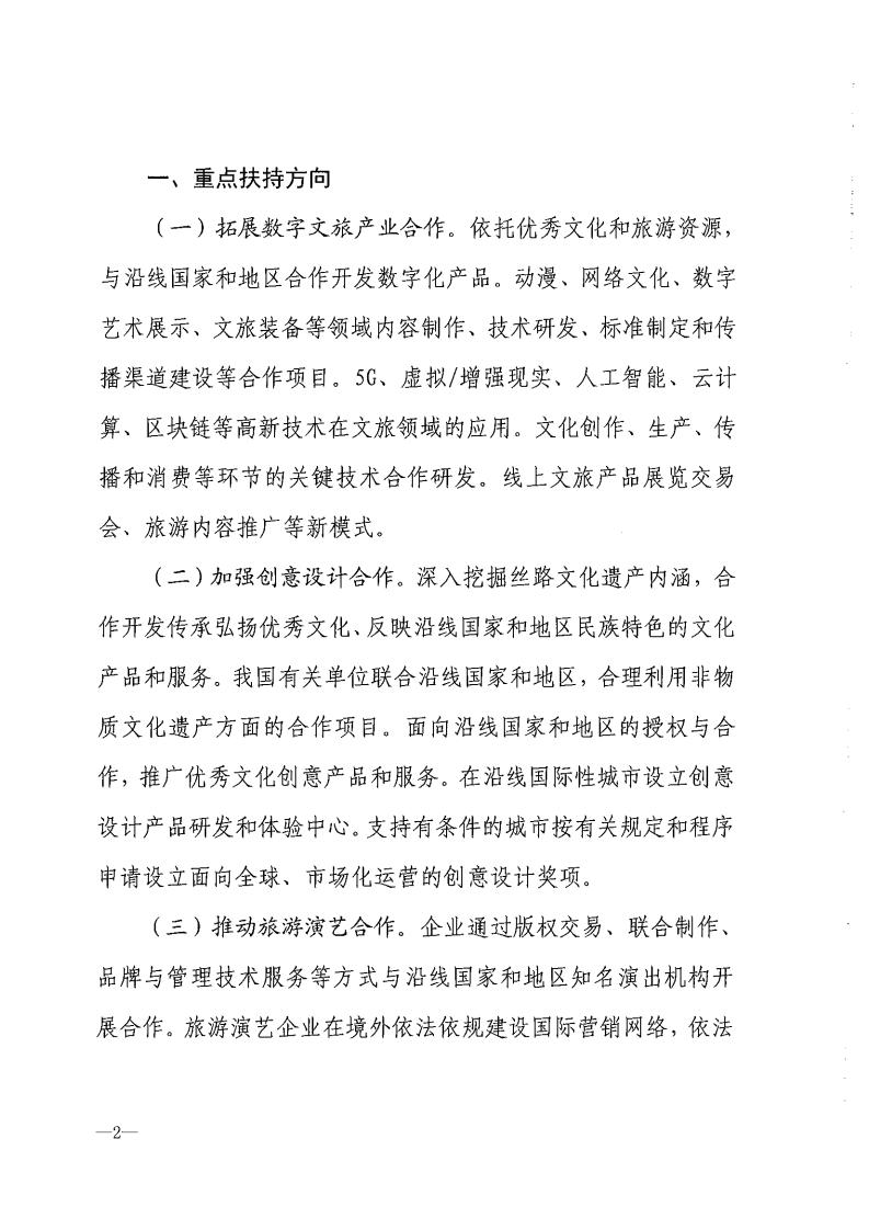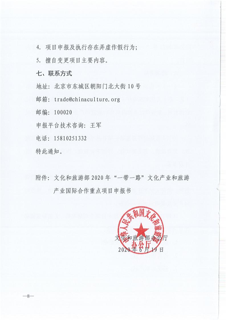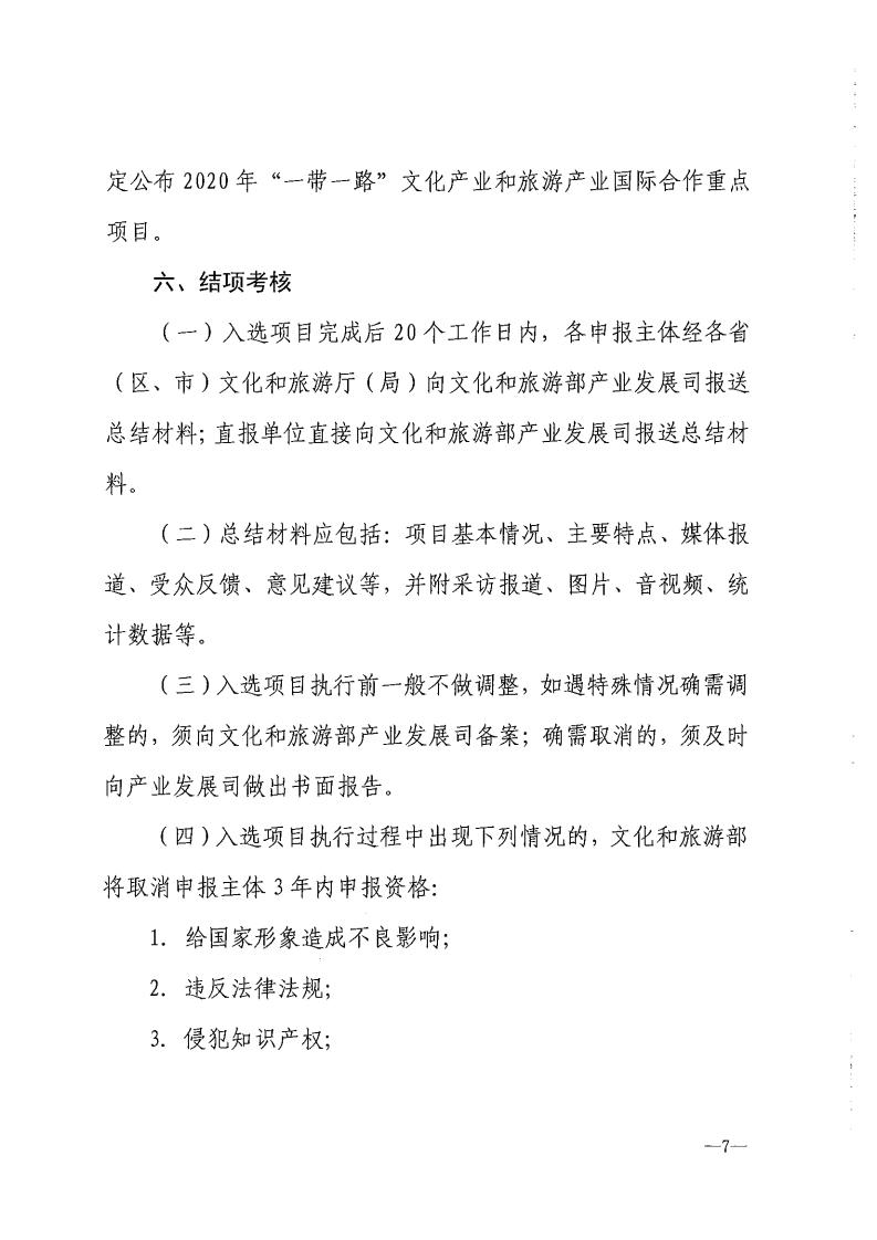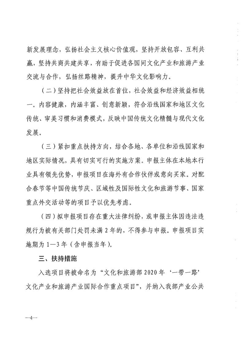 为落实共建“一带一路”倡议,在全面做好疫情防控的同时, 积极促进我国与“一带一路”沿线国家和地区(以下简称沿线国 家和地区)的文化产业和旅游产业合作,文化和旅游部将开展 2020年“一带一路”文化产业和旅游产业国际合作重点项目征 集与扶持工作。现就有关事项通知如下: